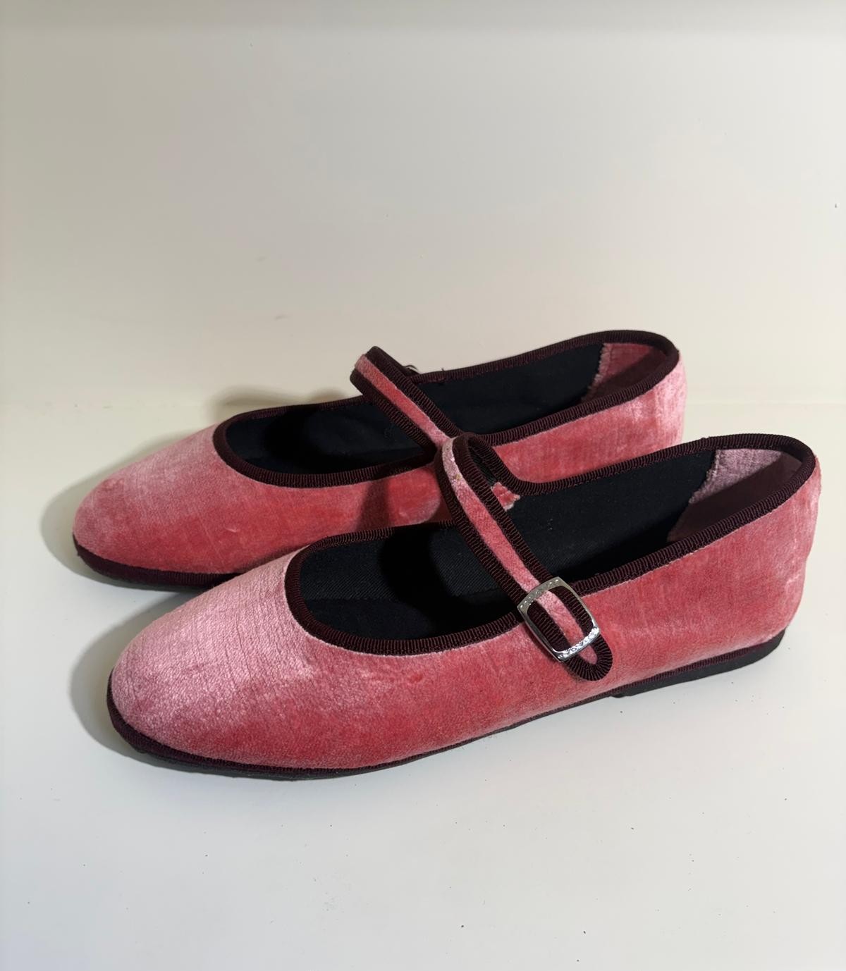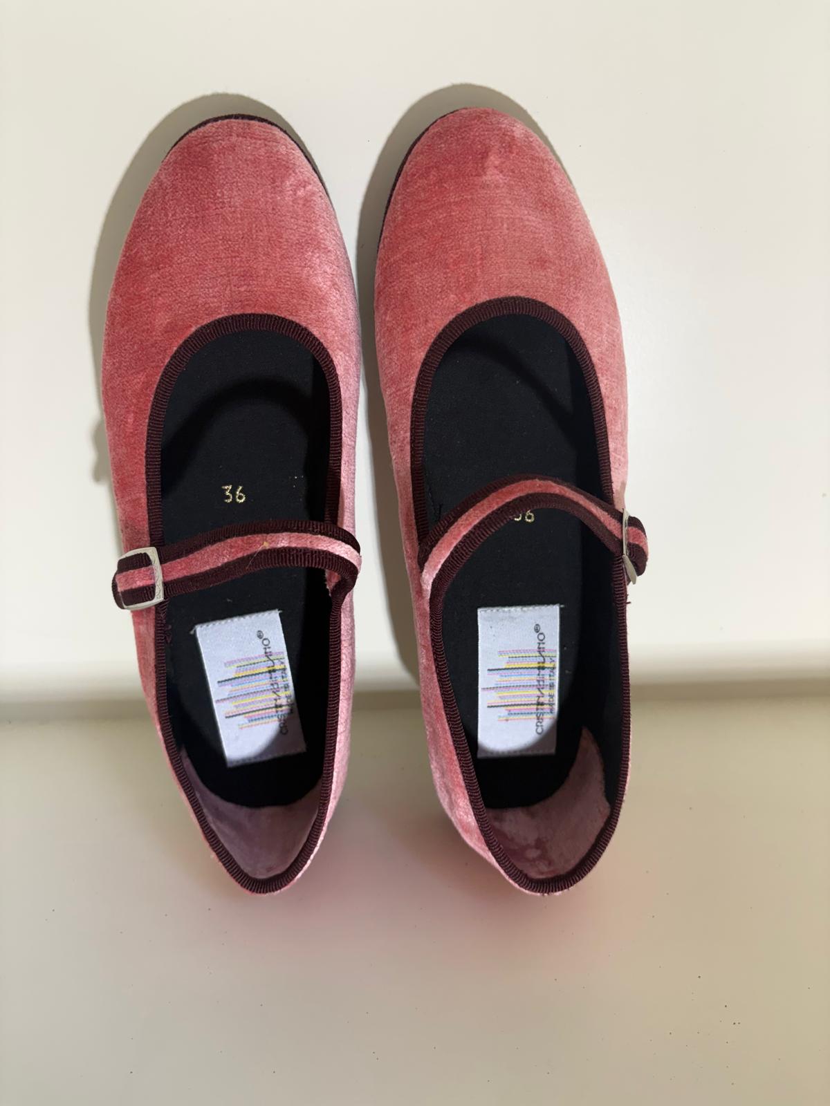 Cristina di Milano Mary Janes – Pink with Brown Trim